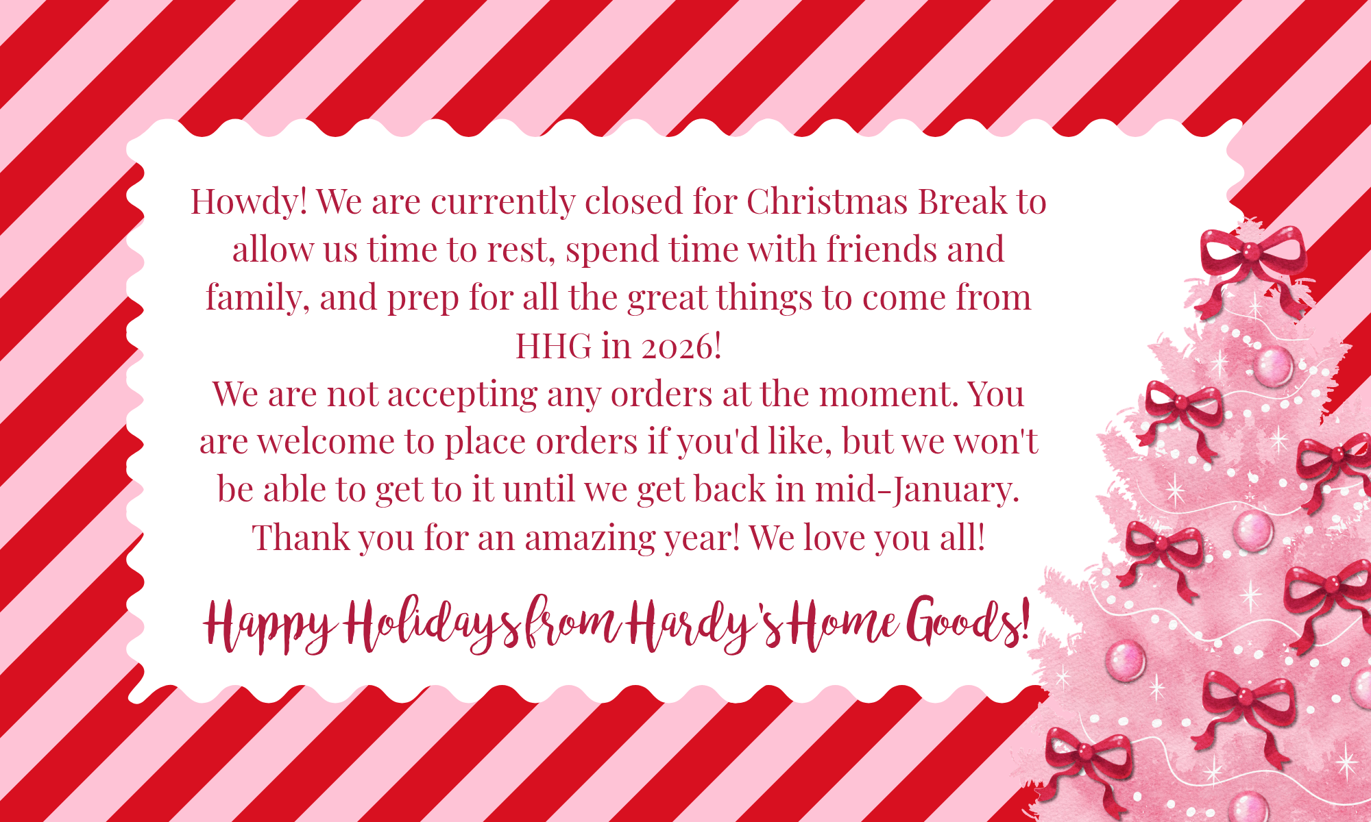 Hi! My name is Madison! I'm from a small town in Northern Michigan. I started my small business in 2023 as a way to stay creative and it quickly became my life's passion. I absolutely love being able to create new and fun products for my customers. I also love custom orders and helping to bring my customers' ideas to life. When you shop Hardy's Home Goods, you're helping support me, my Fiancé, and our two dogs chase our dreams of buying a home and starting a family! Thanks for shopping small!