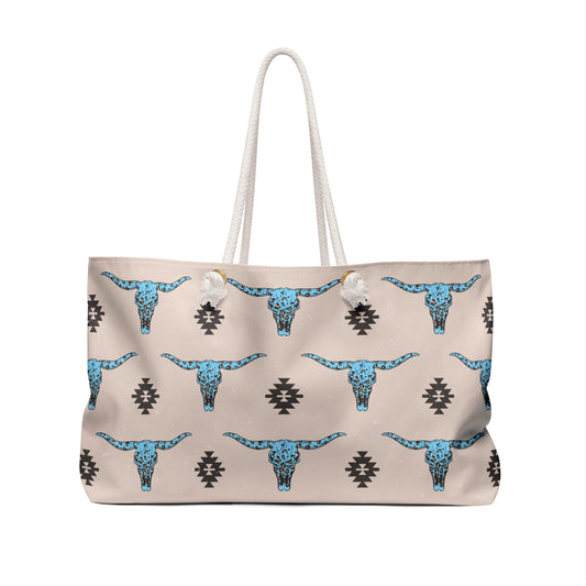 Western Turquoise Longhorn Cow Aztec Tote Weekender Bag, Extra Large, Punchy, Western Luggage, Travel Bag, Country