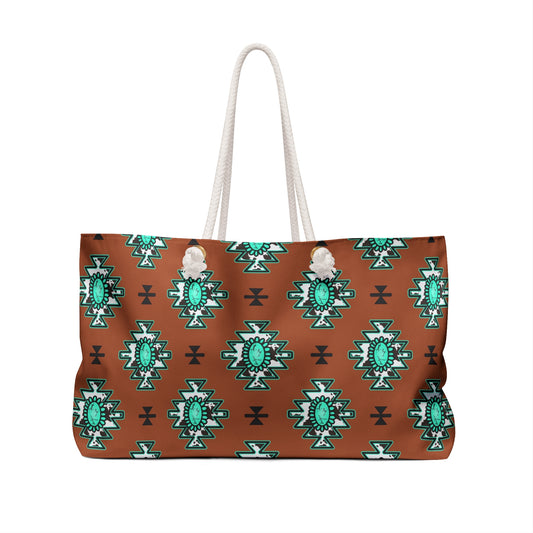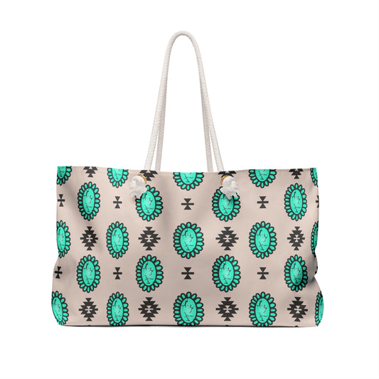 Western Turquoise Aztec Tote Weekender Bag, Extra Large, Travel, Punchy, Luggage, Travel