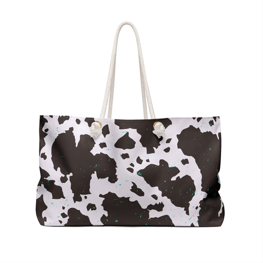 Western Cowprint with Turquoise Specs Tote Weekender Bag, Extra Large, Travel, Punchy, Luggage, Travel
