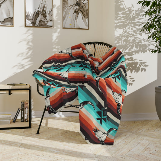 Western Brand Cow Skull, Velveteen Microfiber Blanket