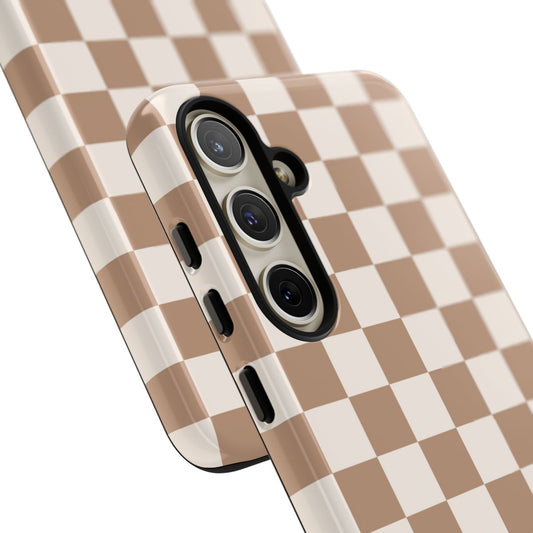 Tan Checkered Tough Phone Cases, Multiple Phone Styles!
