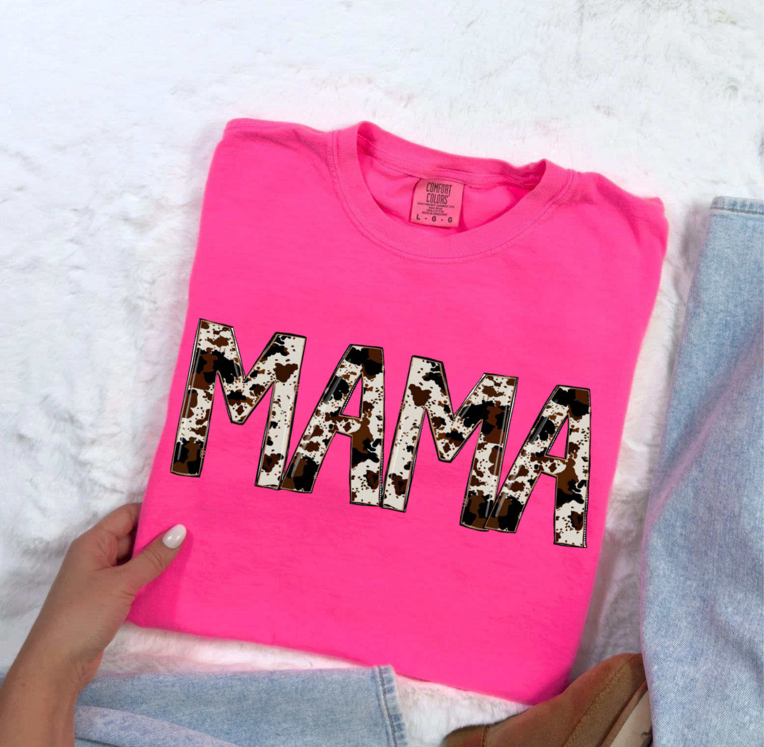 Cowprint Mama - Crewneck, Hoodie, or T-Shirt